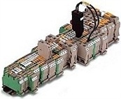 無需擰螺釘聯接導線,作為彈片式聯接技術的早期開發者,其產品得到廣泛應用。 Z 系列組合型端子的特點: 可以聯接包括帶管狀端頭的額定截面導線; 單件結構的接地方式提高了機電可靠性; TOP連接技術(上方進線),方便、快捷、清晰; 2-10聯的插入式聯絡組件節約時間; 帶有測試孔; Wemid 的絕緣材料,阻燃級別V0,不含有害物質。 Z 系列組合型端子的彈片由不銹鋼一次成型,鋼保證壓緊力,銅導電片保證導電。 接線端子上寬敞的開口,方便了帶管狀端頭的導線的連接。 Z 系列組合型端子的配件: 組合型測試插件組合型測試插件直接與導電片接觸,減少了過渡電阻,保證了與電路的可靠連接。組合型測試插件的使用不會影響整個接線端子組的聯絡組件及標記。 縮徑套如果導線截面很小(<1mm2),可使用縮徑套來防止導線進入接線端子太深。 標記系統放置標記號的槽位于接線端子中央,這樣,連好的導線便不會遮擋標記號。標記系統可采用Weidmüller的DEK標記號或新開發的懸臂式ZS標記號。用ZS標記號可以做到8位的標記,而且懸臂式的標記鑲嵌在槽內,拆下來以后正好位于聯絡組件上面。使用分組標記牌可幫助識別功能組。 聯絡組件2至10聯的聯絡組件ZQV使導線布局更加合理。由于ZQV有絕緣保護,因此相鄰的接線端子之間不必另外在加小隔板。通過一個聯絡組件單元可以在同一電位下聯絡多至40個接線端子。聯絡組件上允許通過接線端子的額定電流。根據需要剪去一個或多個接線端子可以跳過某些接線端子。在有兩個接線端子的控制電路接線端子上具有兩個平行的聯絡槽,因此可以平行通過兩種電位。僅在這兩種情況下,額定電流才從800V降為400V。通過預先裝好的轉換線,使得在同一條安裝軌上安裝W系列和Z系列的接線端子成為可能:ZQW1型轉換線用于WDU6或WDU10到Z系列的過渡,ZQW2用于WDU16或WDU35到Z系列的過渡。 Z 系列主要的產品種類有: ZDU普通型 及ZDK雙層型接線端子 普通ZDU型有一進一出,如ZDU2.5,一進兩出ZDU2.5-2/3AN,二進二出ZDU2.5-2/4AN等形式,還有帶發光二極管的普通型接線端子ZDU2.5/22AN。ZDKZDK雙層型ZDK2.5/1.5等,也有帶發光二極管的ZDK2.5/1.5/D。 ZPE接地型接線端子 額定壓接導線截面從1.5 mm2 至35mm2 ,接地型ZPE擁有彈性金屬腳,因此只需將它推到安裝軌上便可以保證可靠地連接。由于金屬件為單件結構,因此在安裝軌上移動接線端子,不會影響接線端子與安裝軌之間的接觸。 ZTR開關型接線端子 ZTR開關型端子為回路開斷測試用 ZSI熔斷器型接線端子 ZSI熔斷器型接線端子可用于電路中保護 ZIK/ZAK模組式傳感器/執行器型接線端子 模塊化組合,方便安裝,節約空間。 組合插拔式彈片接線端子 可以預接線,節約安裝成本。 Z系列微型端子-ZDUA,ZDUB Z系列微型端子有直接安裝,也有用于15mm 和35mm導軌安裝的。